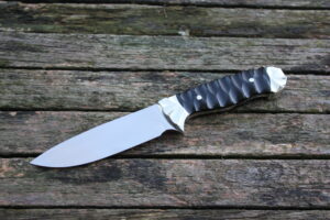 Vor einem Jahr habe dieses Messer schon mal gebaut. Damals habe ich diese Klinge zuerst gemacht und gemerkt das der Griff etwas zu klein für eine Männerhand ist und darum das einfach mal zu Seite gelegt. Nun habe ich es fertig gemacht, etwas gewagt und über den ganzen Griff inklusive der Backen mit Mulden verschliffen. …