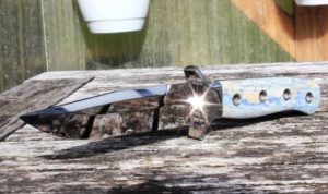 Wieder mal ein Noxx, also eher ein Messer das an einen Dolch erinnert. Hier habe ich ziemlich aufwendige Backen gemacht, alles geschwungen und rund. Zudem alles poliert. Als Griff habe ich gefärbte Kamelknochen genommen, sehen super aus da es kleine Risse hat. Leider sind das sehr alte und schon spröde Knochen gewesen, daher etwas mehr …