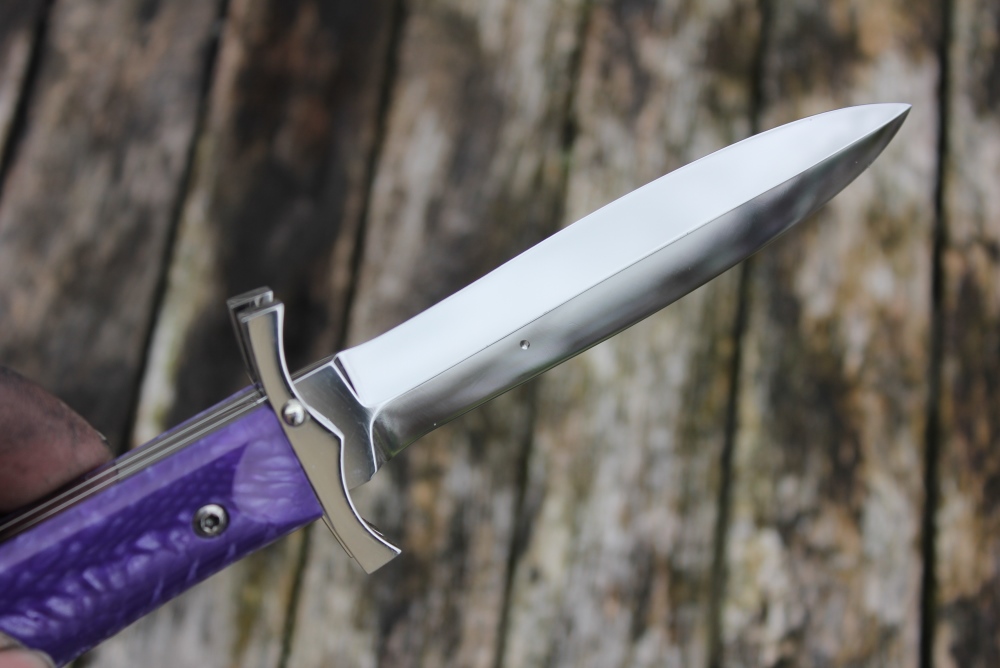 Endlich wieder mal ein Messer fertig, dieses habe ich so als Versuchsmesser gemacht, Klingenform experimentiert. Ich finde es ist echt toll geworden, obwohl der Griff vielleicht etwas zu dick ist, was aber für die Benutzung ein Vorteil ist. Griffmaterial wiedermal Juma, mir gefällt das Zeugs und passt zu diesem Typ Messer. Einfach anschauen und geniessen